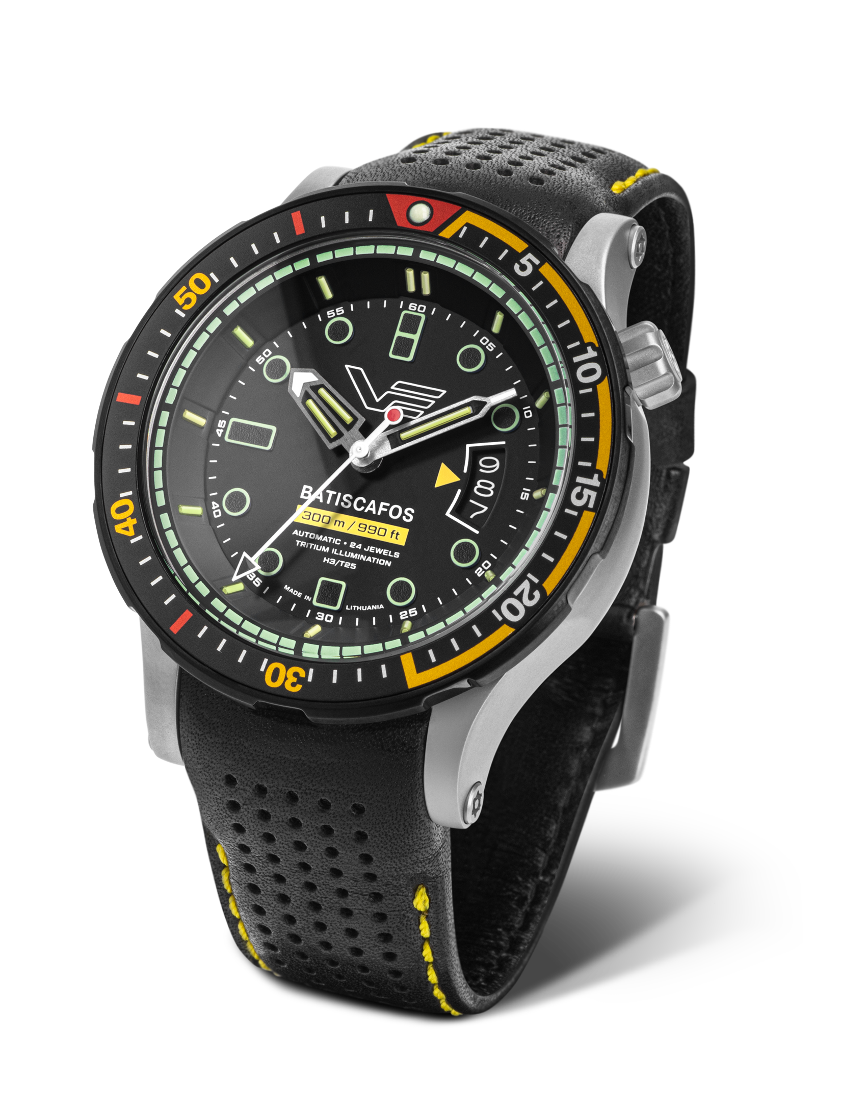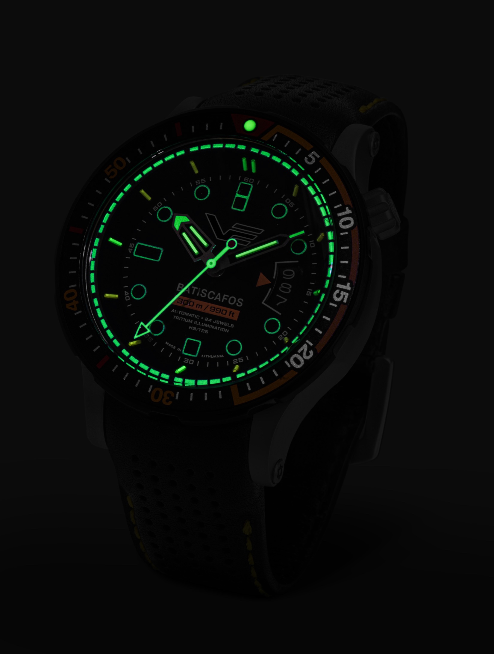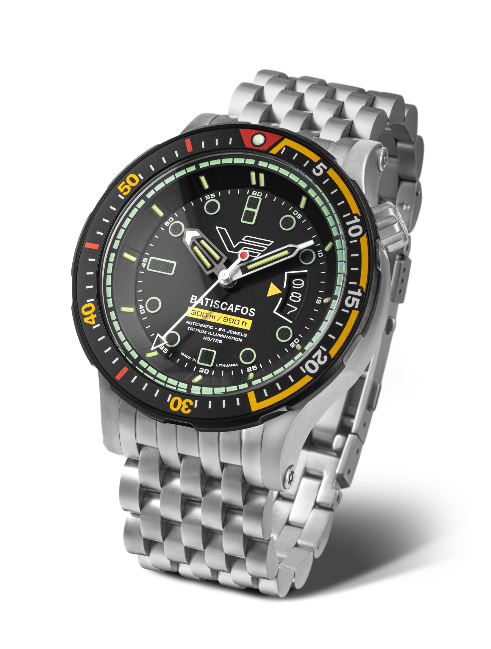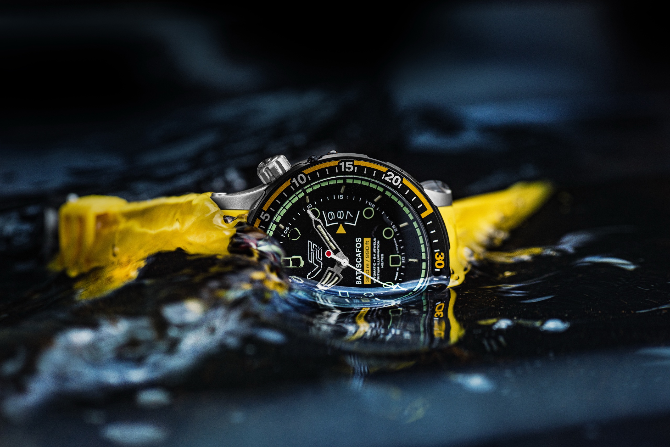 Inspirado en los batiscafos, maravillas de la ingeniería diseñadas para resistir la presión aplastante del océano, la colección Batiscafos fusiona la estética clásica de los relojes de buceo con tecnología avanzada. Su caja estilizada y su fondo de caja de exhibición evocan la silueta de las embarcaciones de aguas profundas, con un iluminador incorporado. El reloj combina Super-LumiNova y iluminación de tritio H3, lo que garantiza una visibilidad continua durante años. Diseñado para el buceo profesional, cada modelo cuenta con una robusta caja resistente al agua hasta 30 ATM, un bisel unidireccional de 60 clics, un cristal K1 ultrarresistente y dos correas intercambiables, lo que lo hace ideal tanto para las profundidades como para el uso diario. Cada reloj se presenta en una caja VE DryBox L personalizada, una caja de policarbonato resistente a los impactos y al agua. Elegante. Resistente. Listo para lo desconocido. «Batiscafos» deriva de las palabras griegas «bathys» (profundo) y «skaphos» (barco). Buques como el famoso Trieste, que en 1960 descendió al fondo de la Fosa de las Marianas (10 984 ± 25 metros), representan la incesante búsqueda de la humanidad por lo inexplorado. Además, se puede adquirir por separado un brazalete sólido integrado de acero inoxidable con hebilla especial de extensión de buceo.